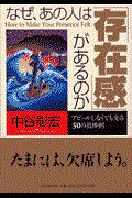 世の中にはあきらかに存在感のある人とない人がいる。どうしたら存在感が出せるのか。まず存在感の本質を理解し、わざわざアピールしなくてもいつのまにか存在感が光ってくる50の具体例を示す。