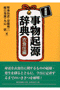 小豆、甘酒、椅子、おでん、巾着、納豆…。生活の基本である衣食住に関連のある諸事物の起源発生を解説した辞典。説明は現状に到達するまでの発生から分化・変化まで、文献・遺物に典拠を求めて書かれている。