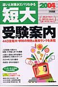 受験情報&対策編(2004年入試展望―センター試験利用の導入でさらに間口広がる;あなたはどの学科で何を学ぶか―系統別・学科内容紹介;こうやれば合格できる!―小論文・面接&学科試験の出題傾向と攻略のポイント)地域別短期大学案内編(北海道;東北;関東(神奈川を除く);東京・神奈川;中部;近畿;中国・四国;九州;文部科学省所管外学校)入試資料編
