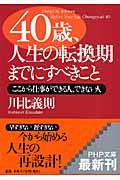 40歳は人生の大きな転換期だ―。そこから仕事や生活が充実した毎日を送れるかは、20〜30代でどれだけ自分のキャリアに「含み資産」を作ったかで決まる。本書は、「セカンドライフの準備は早いほどいい」「担保価値のある社員を目指せ」「『あきらめない』は1つの才能である」など、第二の人生で自分の能力を存分に発揮できる人になるためのヒント集。