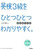 英検3級を超基礎レベルからやさしく解説。合格に必要なポイントを,わかりやすい解説(左ページ)+リアルな練習問題(右ページ)の2ページにまとめてあり,どんどん学習が進められる。わかりやすい解説動画も用意。新試験英作文問題にも対応。CDつき。