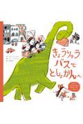 きょうりゅうバスが子どもたちを図書館に送ってくれます。きょうりゅうも本を読みたいと思うのですが、きょうりゅうは大きすぎるので入ることができなくて……。
